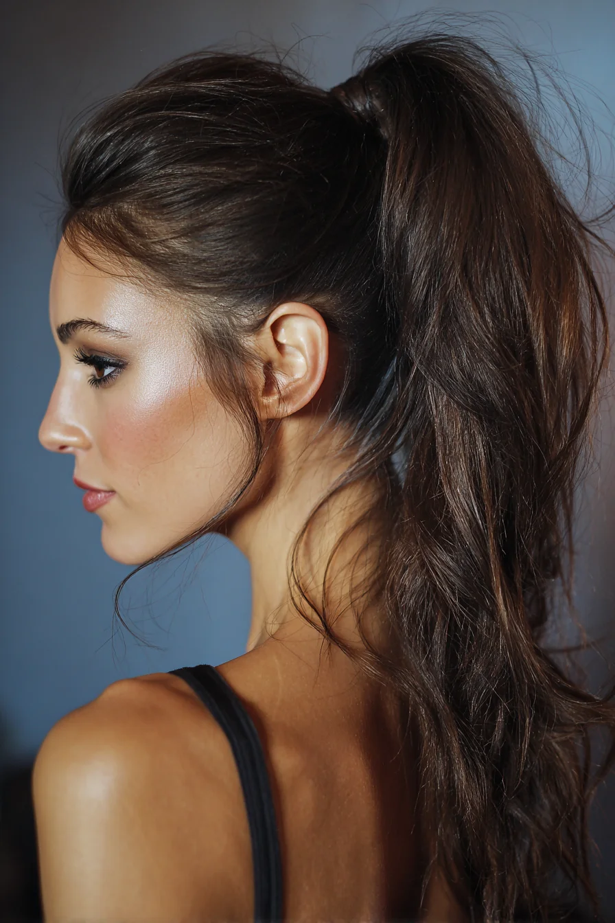 Textured High Ponytail with Loose Waves and Face‑Framing Pieces
