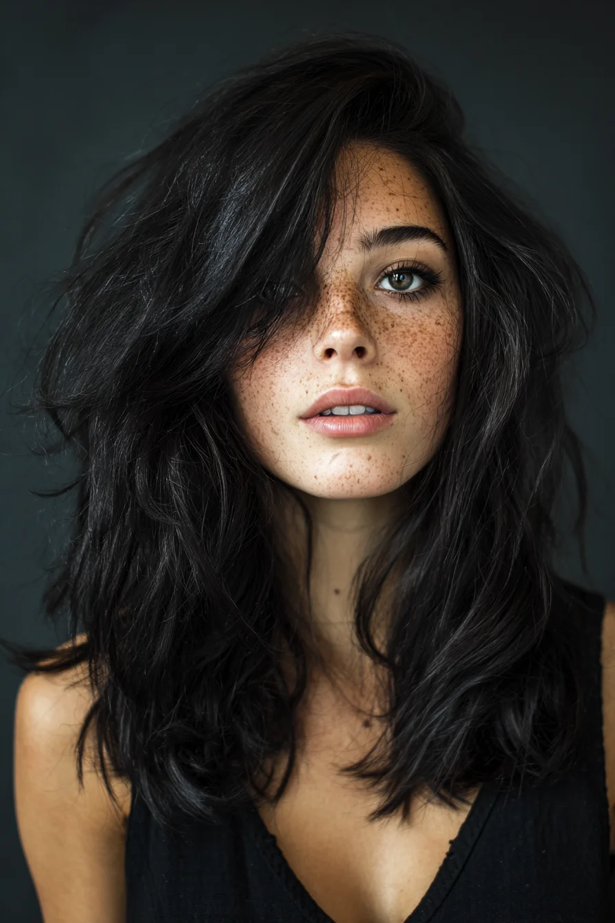 This modern, shoulder-grazing layered lob with a side-swept fringe creates natural volume and effortless movement. Suitable for fine to thick straight or wavy hair (very tight curls require a modified cutting approach), the cut uses long layers to remove bulk and encourage soft bend and texture. In the salon: cut into soft, face-framing layers with slightly heavier weight at the ends and a long, angled fringe for sweep. Styling technique: rough-dry hair upside-down to build root lift, then use a round brush to smooth the fringe and add bend at the ends. For texture, wrap 1